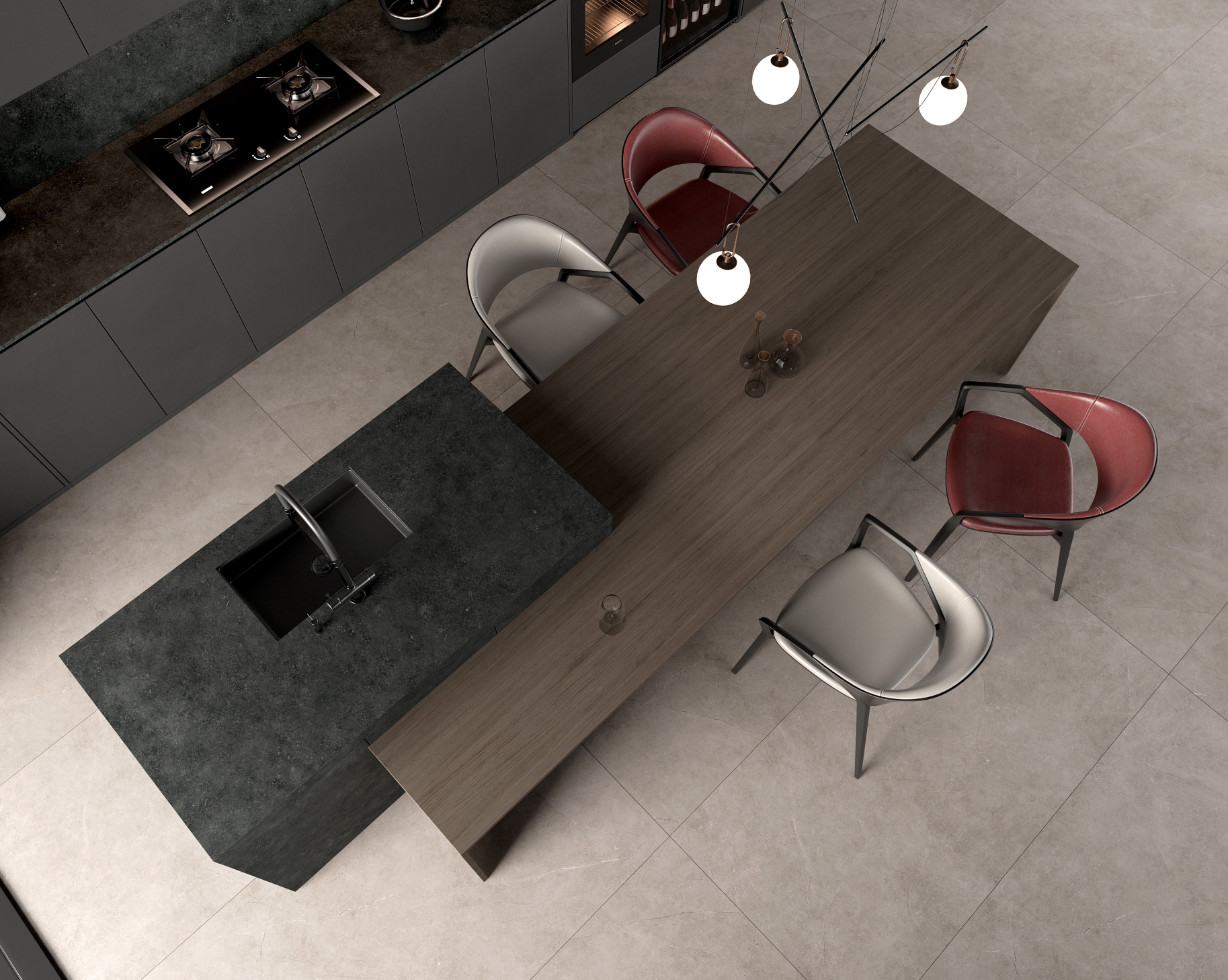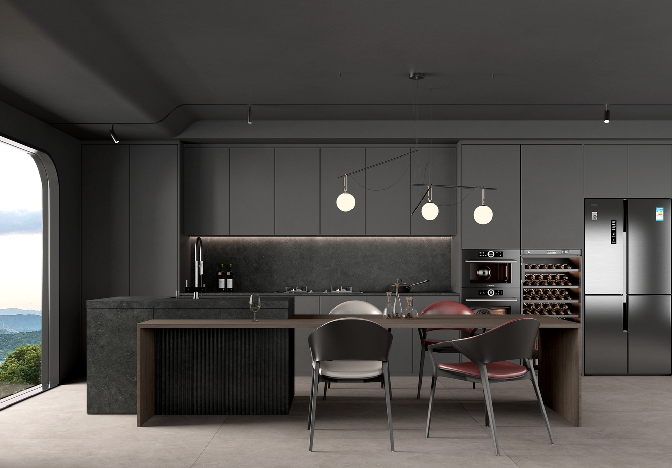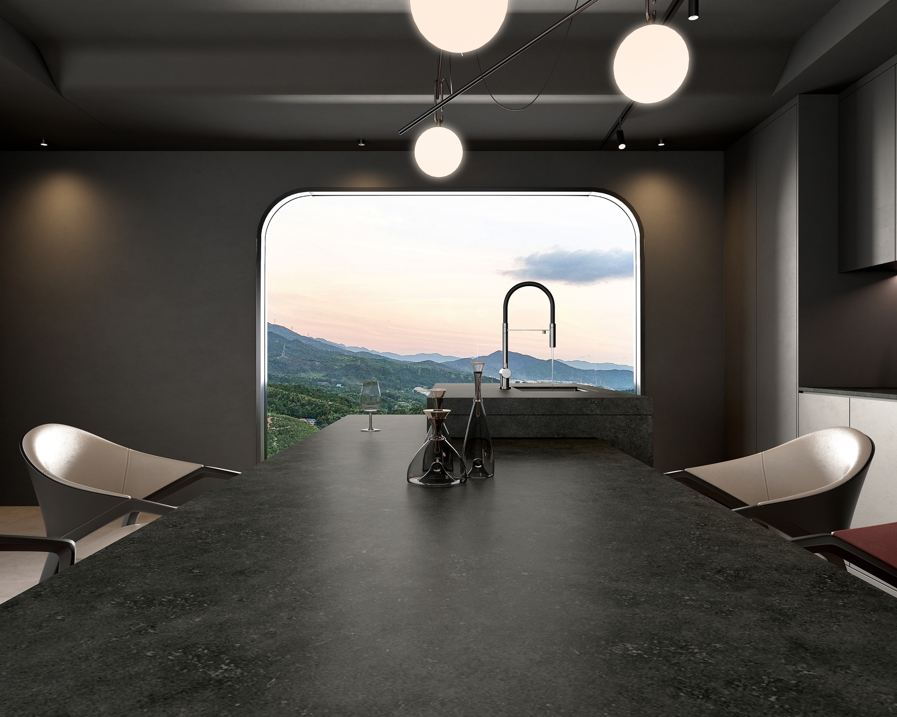 凝固的紋理中蘊涵砂石的涌動跳躍,粗獷而流動自然別有一番璀璨星辰的動態神韻。黑曜嵐幕巖板,再現宇宙之外的深邃與神秘。與生俱來的霸氣與魅惑,不會因潮流而變化。質感非凡,層次豐富,把現代人對自然的渴望融入巖板設計中,喚醒內心最深處的悸動。