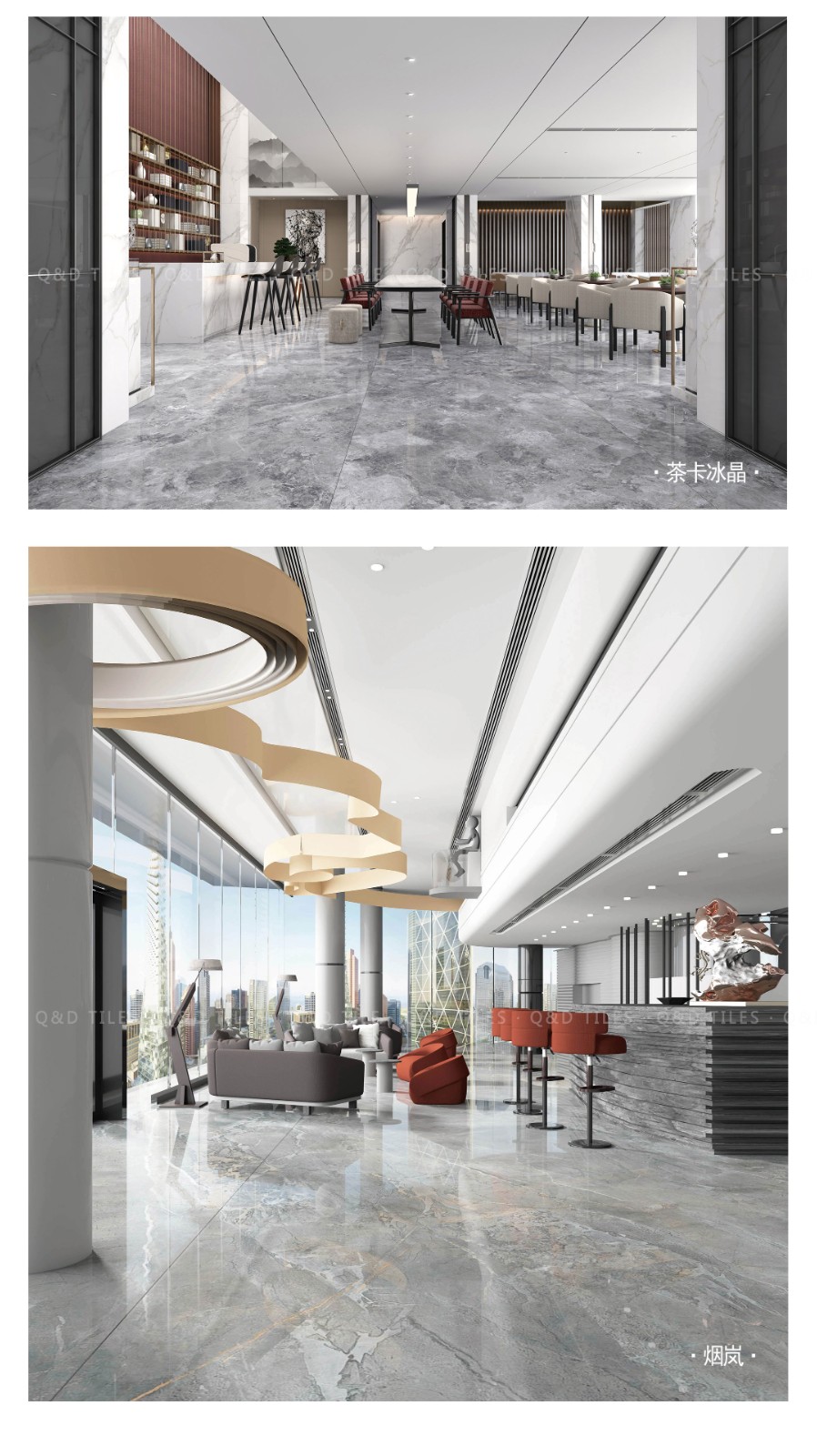 從墻面到地面、臺面材料進行產品延展開發,打造全空間配套應用的巖板體系。使QD巖板在各個應用領域有著出色的表現力,成就空間之經典。