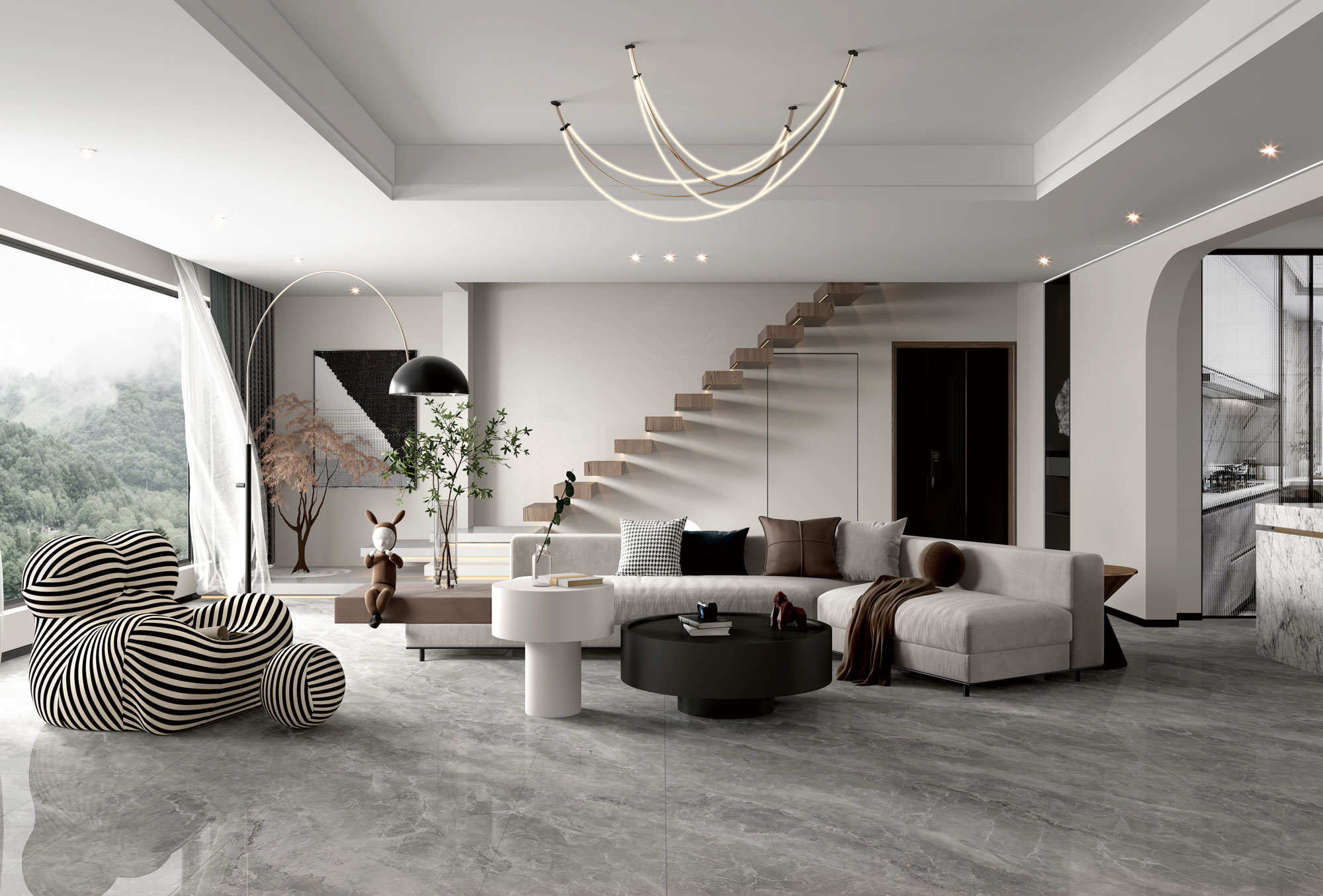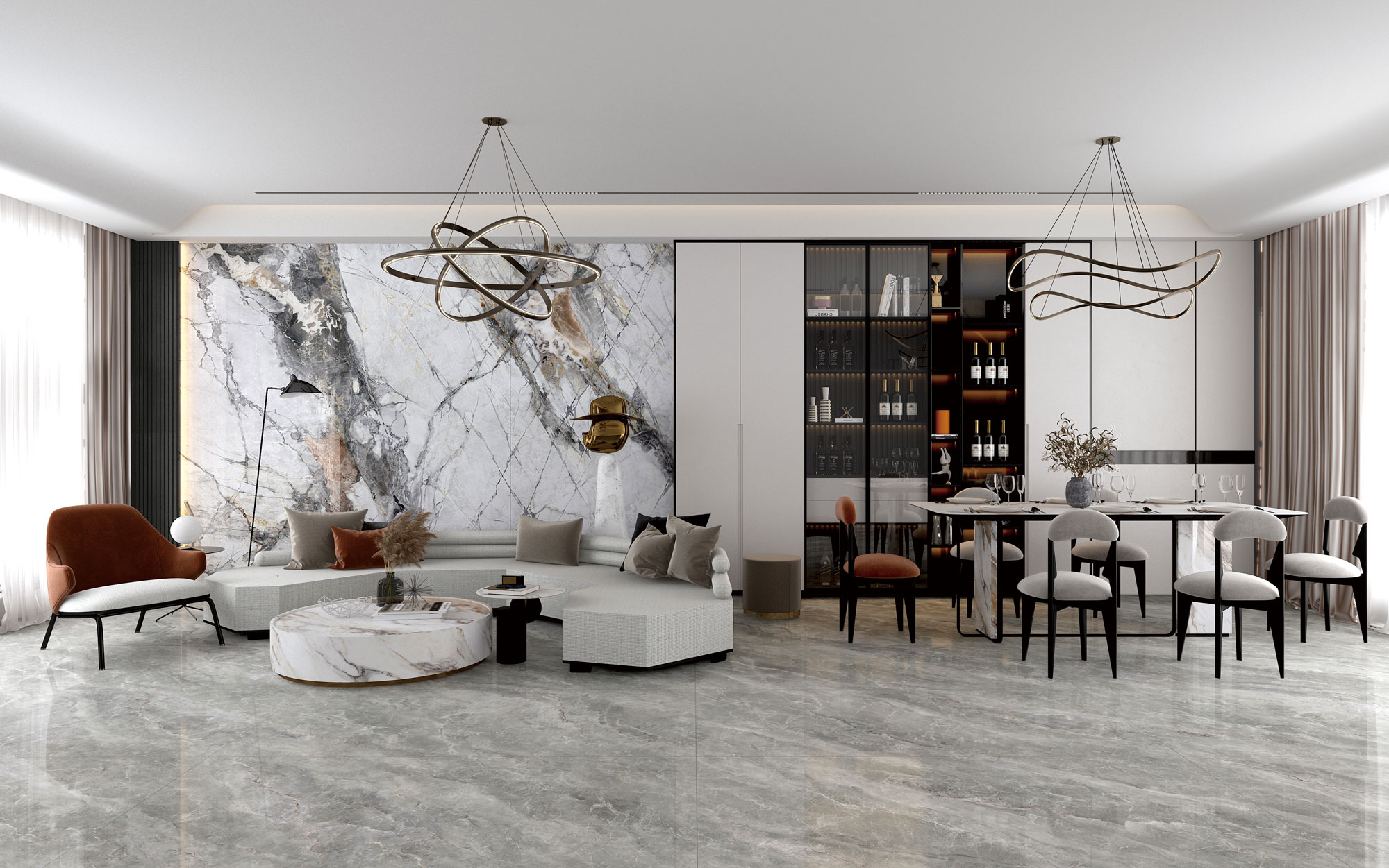 簡(jiǎn)約的淺灰主調(diào),揮灑著銀白色脈絡(luò),紋理細(xì)膩緊湊,加上900X1800mm規(guī)格無(wú)限任意連紋,還原朦朧夢(mèng)幻質(zhì)感。(任意無(wú)限連紋)