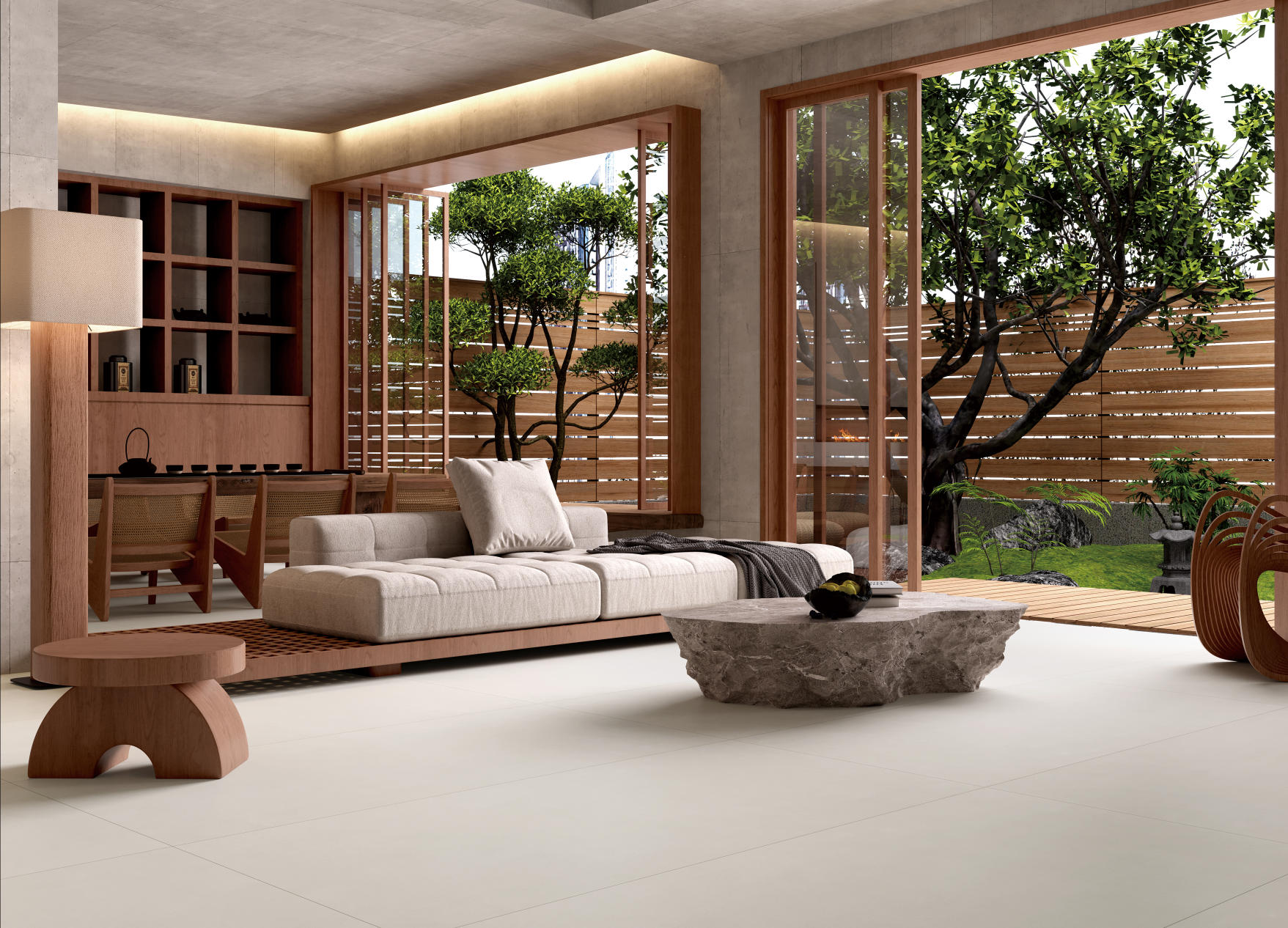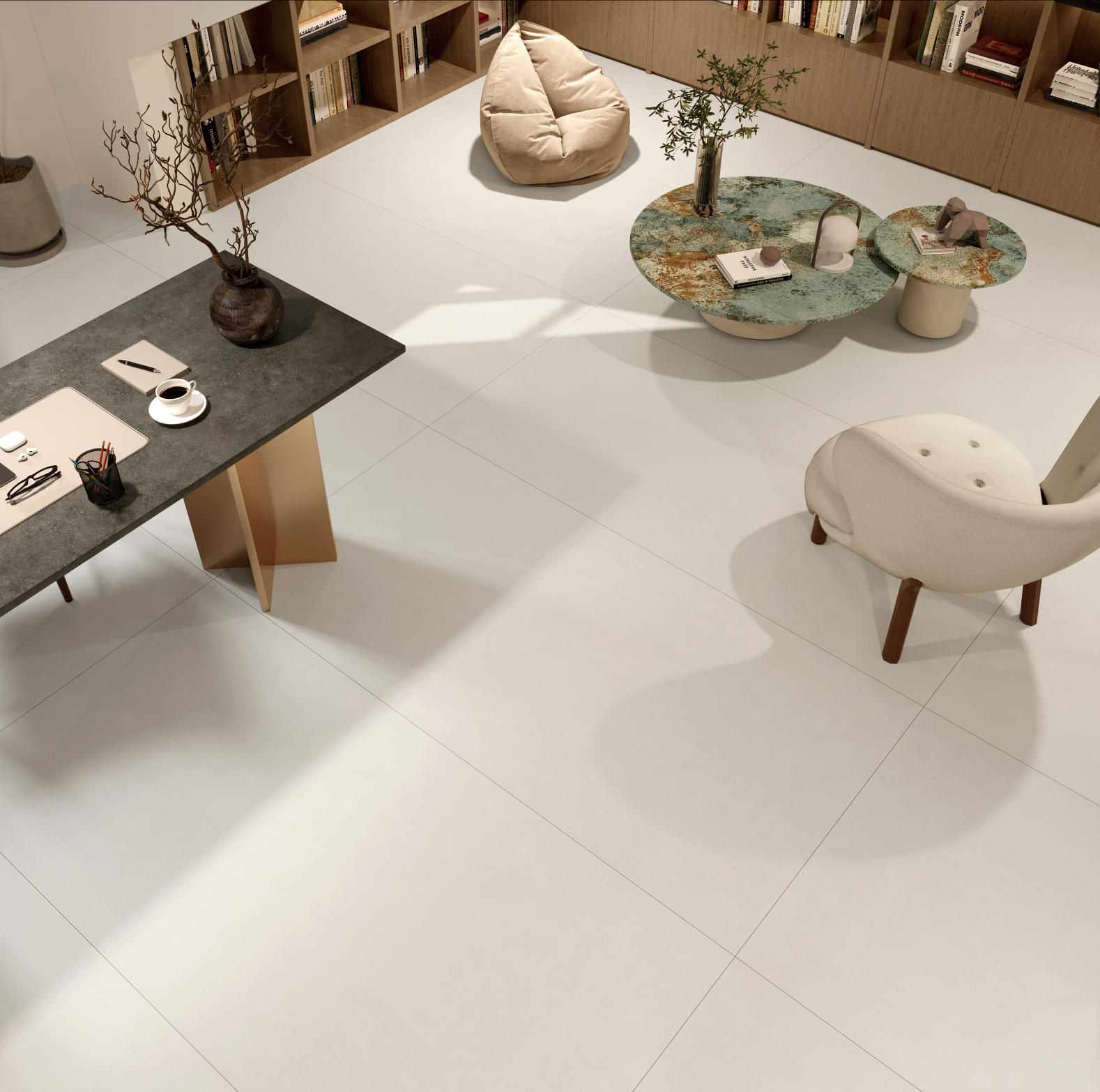 淺米清新自然,素凈自然的脈絡帶著水泥般的視覺效果,透露著獨有的一種工業氣息。原始的質樸氣息,突出本質的美感。